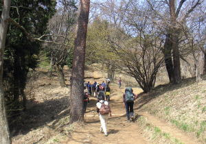 | 桜は開花が始まったばかりだったが、中には早咲きのものもあり楽しめました。ほかにコブシ、ツツジ、タチツボスミレ、エイザンスミレ、テンナンショウなどを楽しみながら城山に向かいました。 |