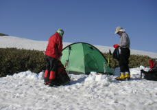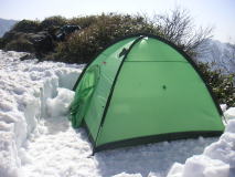 | 宅地造成に充分時間をかけて白毛門山頂に張ったテント防風壁、トイレ付き |