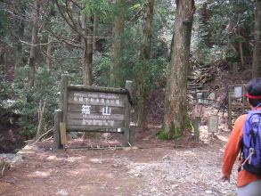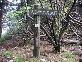 山頂近くにいわくありげな『入らずの森入口』という道標があり、これを見送って社の石段を登れば山頂 |