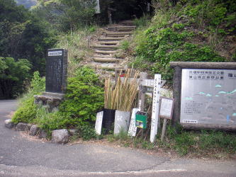 | 登山口。杖がたくさんあり人気がしのばれる。 |