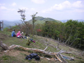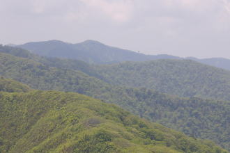 | 山頂の景観。右下の写真は護摩壇山に続くなだらかな尾根。ごまさんタワーや山頂の東屋を確認することができた。 |