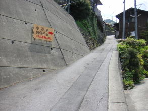 | 駐車場脇の橋を渡り、この坂を登って伯母子岳に向かう。 |