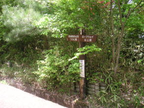 | 葛城山への入口。ここからロープウエイを左に見ながらちょっと進むと登山道の入口(右)がある。 |