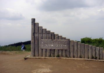 | 山頂への道標。葛城高原山頂と書いてある。 |