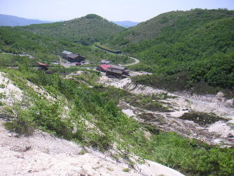| ニセコアンヌプリの登山道から見る五色温泉 |