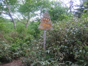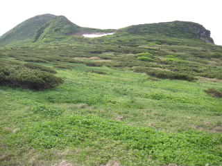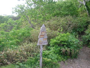 | 山頂で展望を楽しみ、昼食をとり、ゆっくり過ごしてから下りはじめた。花の写真を撮りながらの下りで、しかも花がたくさんあるので時間がかかる。頂上直下の小さな社のあるところで監視員に会った。帰りも車に乗って行くように勧めて頂いた。でも下りは花の写真を撮りながらなので遅くなるし、もともと9km歩くつもりで歩き始めたのだからと辞退した。 その後も写真を撮りながら下っている時に、山頂まで行って下ってきた監視員に追いつかれた。この時にも、先に下って夕張岳ヒュッテで待っているから車に乗って行くようにと勧めて頂いたが辞退し先に行っていただいた。写真を撮りながら下り、石原平に着くと監視員が弁当を食べていた。ここでもまた車に乗って行くよう勧められた。ここからは樹林帯になり花の写真を撮る機会はあまりないので、車に乗せていただくことで待たせることはないと思い、ご厚意に甘えることにした。冷水コースと馬ノ背コースのどちらを下りるのかを伺うと冷水コースということなので、追い越されて待たせることがないよう私が先に石原平を出発して冷水コースを下った。結果として20分ほど先にパトロール車の所に着き、監視員に待っていただくことなく閉鎖されたゲートまで乗せていただくことができた。 親切な監視員のお陰で、ゲートに戻るのは4時過ぎになると思っていたのが1時前に戻ることができた。すばらしいお花畑と景観の夕張岳の思い出に、親切にしていただいた監視員の思い出が加わり、忘れがたい山行になった。感謝!感謝! |