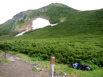 | 羅臼平。荷物を置いて羅臼岳に登る人も多い。 |