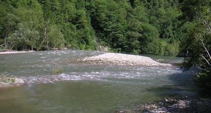 | 来年のことを考え、車道終点のゲートまで行き、札内川のようすを見てきました。河床の灌木や草が水没し増水していることが確認できました。 |