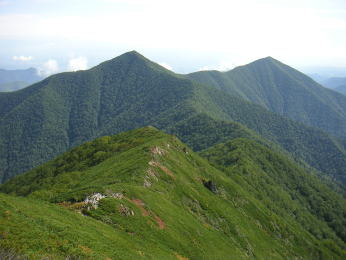 | ピパイロ岳から北戸蔦別岳に連なる尾根 |