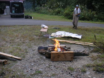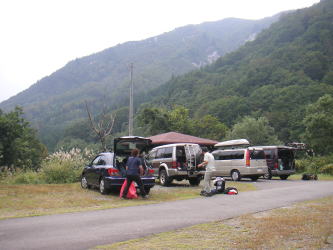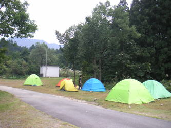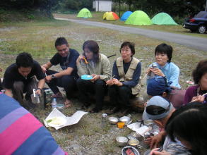 | 10/01昼前に車4台に分乗して町田を発ち、巻機山麓キャンプ場に午後3時半頃に到着。早速テントを張り、たき火をスタートし、夕食の準備に取りかかる。 |