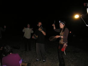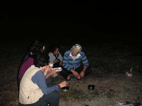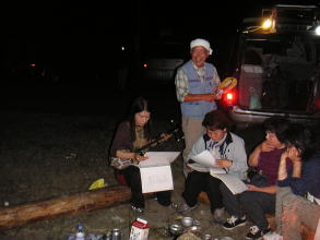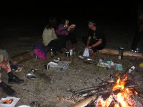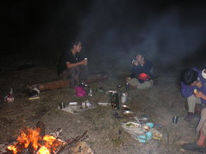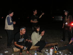 | お酒と食べ物が少なくなり、たき火が小さくなってきても名残惜しそうにおしゃべりを楽しむ姿も。 |