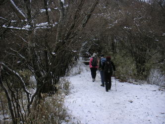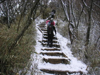 | 見晴台から山頂までは、踏み固められた雪が凍っていてとても歩きやすい |