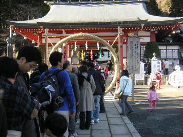| 例年通り、日向薬師から九十九曲、見晴台、大山、阿夫利神社下社、追分のコースで新年山行を行いました。富士山には大きな雲がかかって山頂部は見えませんでしたが、晴天に恵まれ気持ち良く歩いてきました。 |