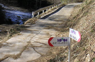 | 金山峠を過ぎると道はまた林道に下りてしまい、ここからまた山道に入る |