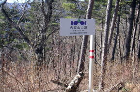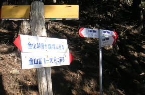 | 金山峠付近の大垈山、セーメーバンへの分岐の道標 |