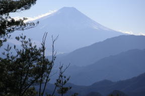 | 雁ガ腹摺山の山頂には、500円札の富士山の写真はここで撮ったものだという説明がある。富士山はよく見えたが、オート・フォーカスが利かずにピンボケ。この写真は大垈山付近で撮ったもの。 |