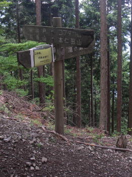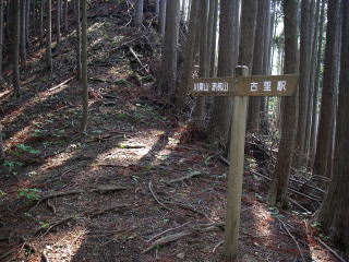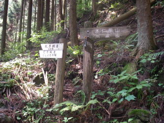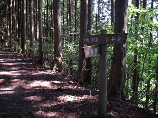 | 登山口から40〜50分程歩くと川井駅への分岐に到着。 |