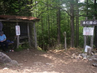 | 本仁田山。どういう分けかここにはうるさい虫はいなかった。ここなら落ち着いて昼食がとれたのにと思うと残念。 |