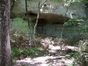 | コースで唯一岩壁のあるところ。だがここでは道はほぼ水平で、右手に進む。 |