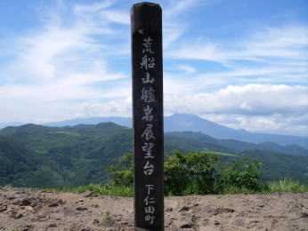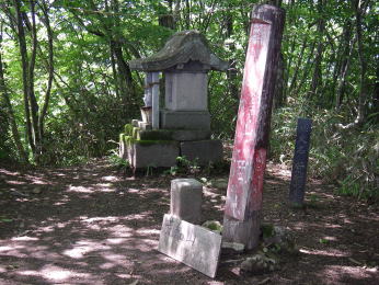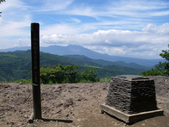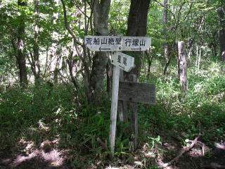 | 経塚山山頂。道標には行塚山という表記もある。ここには荒船山という表示もされている。ここがこの付近全体を示す荒船山という中で一番高いところなので、荒船山という表記もされているのだろう。 この後、往路を内山峠まで戻り、予定より1日早く帰京した。 |