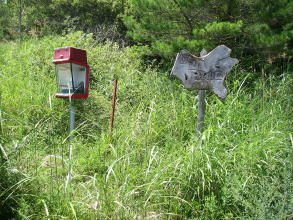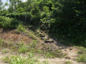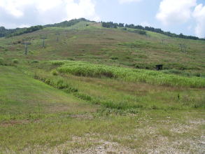 | 登山口。スキー場の端の刈り残した草の中を進むのでちょっとしたヤブコギ。 |