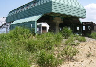 | 登山口のあるモンデウス飛騨位山スノーパークスキー場。道の駅も併設されている。登山道はスキー場の向かって右端にある。 |