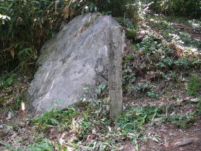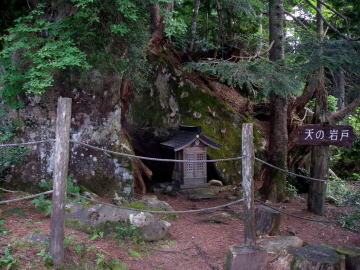 | 御神楽岩から5分ほどで天ノ岩戸へ。ここでダナ平林道登山口からの道が合流し、ちょっとした広場があり、休憩用のベンチもある。 |