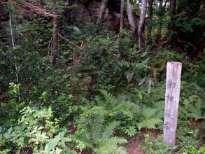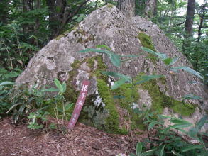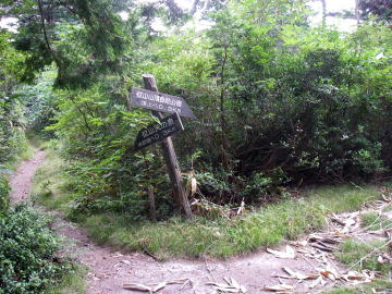 | 天ノ岩戸付近にある山頂と天ノ泉(御神水)の分岐。山頂に向かう。 |