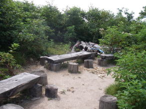 | 山頂と間違えそうになった広場。ベンチがたくさんあり休憩に最適。だが山名が表示されていない。探すと長さ10cm程の位山の書かれた板が置いてあった。だがこんなはずはないと思い更に探す。 |