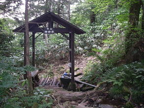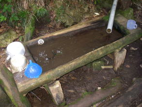 | 御神水。水の流れは非常に細い。すぐ脇に水量の多い水場が設けてあった。 |