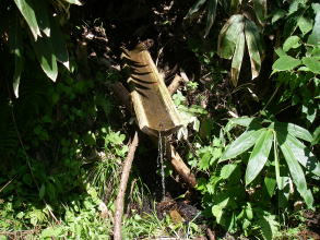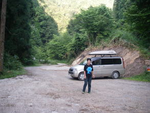 | 山之口林道登山口と駐車場。まだ地面の落ち着いていないところがあり最近広くしたばかりのようだ。登山口脇には水場も出来ていた。 またここから渡渉点まで5分ほどなので、林道のゲートを移動して、新しく駐車場を作ったのかも知れない。 |
