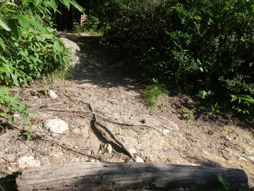 | 尾根上の小広場。広場と呼ぶのは気がひけるほど狭い。渡渉点からここまでは急な道が続くが、この後はなだらかな道が続く。 |