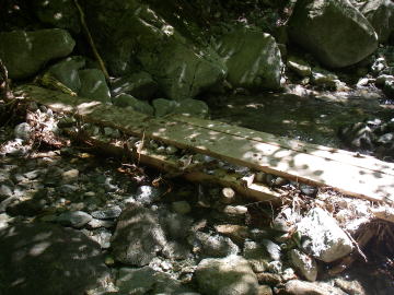 | 渡渉点には橋が架かっていた。 登山口から渡渉までは道に水がしみ出して湿地帯のようになっているところが多く、しかも日当たりがいいので花がたくさんあった。 |