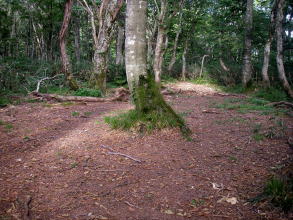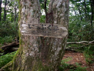 | 道脇に3本の三角点のような石柱が表れるとすぐにこの広場。いっぷく平らしいと思ったが何の道標も見えない。そのまま進んでちょっと脇を見ると『いっぷく平』と書いた板があった。 |