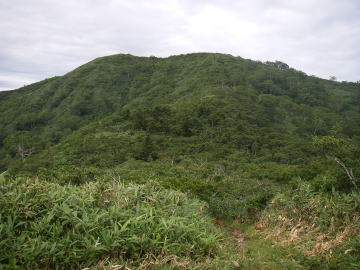 | いっぷく平からは、道はなだらかなところが多くなり、樹林帯を抜けると日出ヶ岳が見える。 |