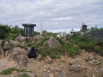 | 山頂には山名を書いた柱をはじめ、大日如来、大日如来の由来を書いた石碑など色々なものがある。 |