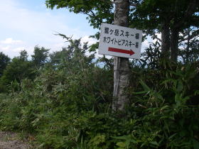 | 大きな道の終点にある鷲ヶ岳の登り口。ここからは20分ほどで山頂に着く。 |