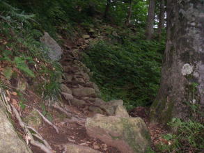 | 笠新道は岩を積んだ道で、下部は歩きやすくしようという意志が感じられるほど丁寧に作られている。 |