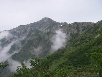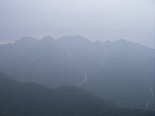 | 黒部五郎岳は見えるものの、小雨が降ったり止んだりの状態。 |