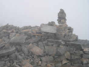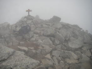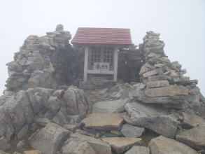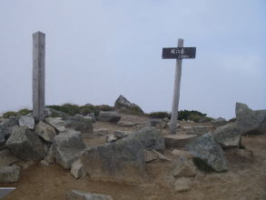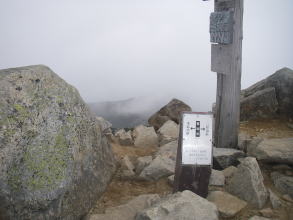 | 笠ヶ岳山頂。ガスがかかって展望なし。 |