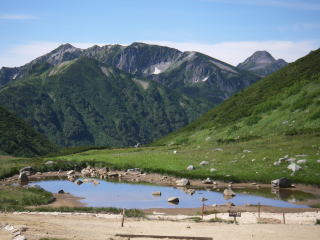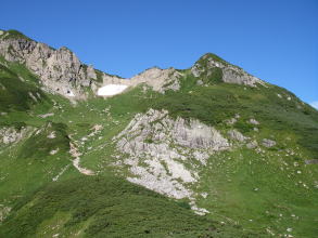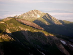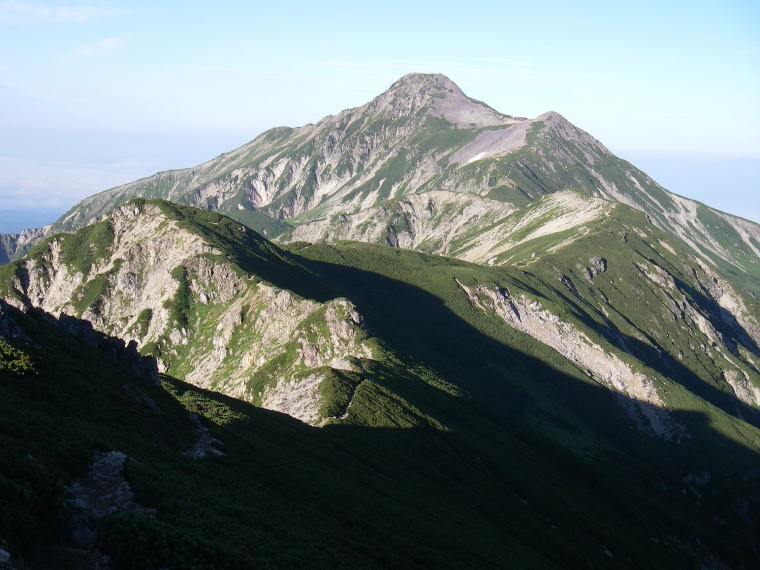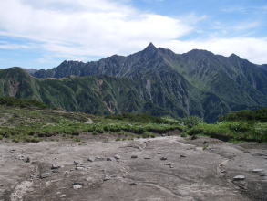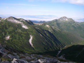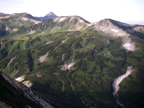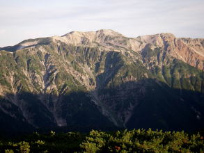 | 黒部五郎岳(右)と三俣蓮華岳 |