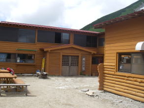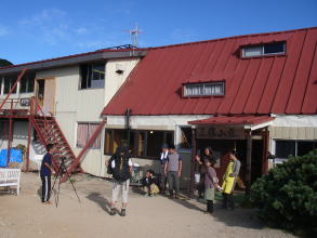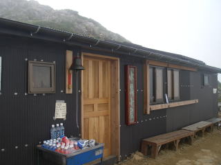 | 水晶小屋。宿泊の手続きをした後、ビールを早く呑みたい一心ですぐに水晶岳に向かう。 |