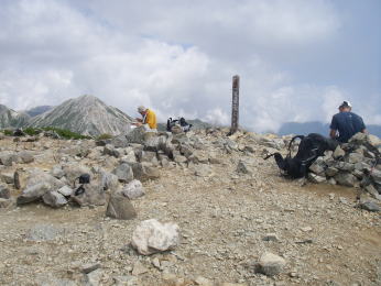 | ワリモ岳山頂。ワリモ北分岐付近から水晶小屋の間には花がたくさん咲いていた。 |