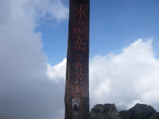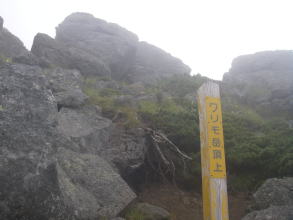 | 水晶岳。上空に晴れ間が見えるものの、周囲はガス閉ざされていた。 |