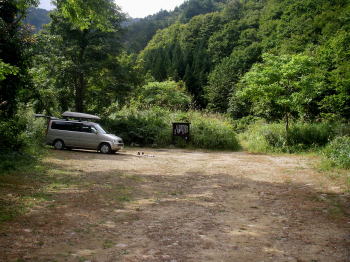 | 赤倉沢登山口は『いわなの里』という釣り堀から3〜400m入ったところにあり、駐車スペースと登山者カード入れがある。登山口へのアプローチが分かりにくい山は多いが、ここは『いわなの里』の看板が国道の随分離れたところにもあるので看板を頼りに行けば分かりやすい。いわなの里までは舗装道路なので運転も楽だ。 |