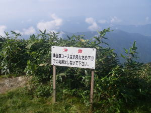| 屏風道を登り切ると、危険だから下りには使わないでくださいと書いてあった。 |