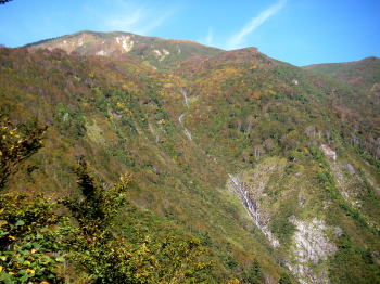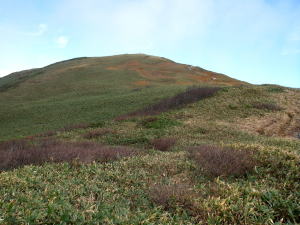 | 朝日岳への分岐のある方向から見た巻機山 |