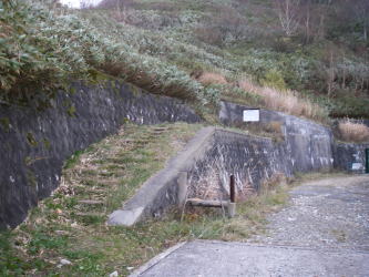 | 登山口の階段。林道はゲートで閉鎖されているが林道は山頂のすぐ近くまで続いている。 |
