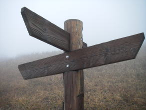 | ヘリポートの近くにある山頂と小白木峰の分岐。この分岐から山頂は50m程。 |