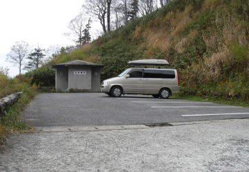 | 国道471の大長谷付近から白木峰に向かう林道に入り、30分ほど走ると1300m地点登山口に着く。駐車の区画は6台分。トイレがある。 |